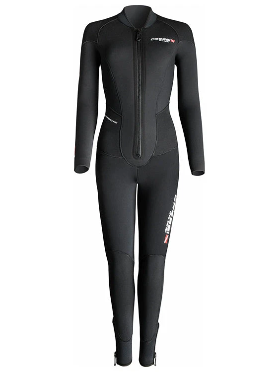 The Cressi Endurance 7mm Ladies Wetsuit is a very durable one piece wetsuit for cold water diving, designed to last and withstand intense use. This suit has become very popular among diving schools rental suits over the years.