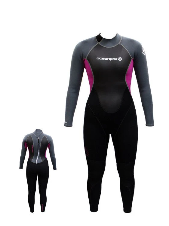 A flexible, warm, back-zip wetsuit for water sports, ergonomically cut for women – this is the Ocean Pro Iluka 3mm Female Wetsuit. The form fitting 3mm neoprene suit will keep you warm. The form-fitting neck and wrist-seals minimise water flow. On top, the smooth skin outer panels reduce wind chill. The perfect combination for a multi-purpose wetsuit!